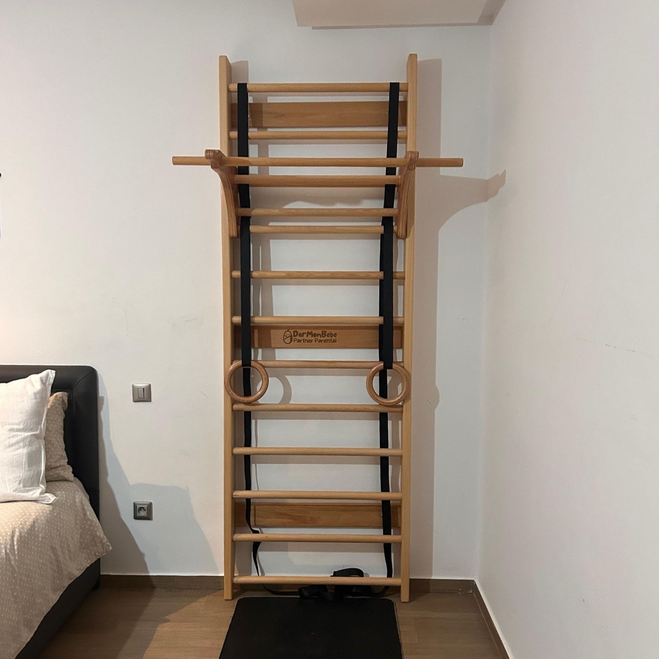 L'Échelle Suédoise Darmonbebe en Bois de Hêtre est un équipement mural polyvalent. Elle s'intègre parfaitement à votre intérieur grâce à son bois naturel et élégant, offrant une touche décorative qui signale l'attention de la famille pour l'esthétique et la santé. Elle est idéale pour l'exercice des adultes et le développement moteur des enfants, le tout avec une Barre de Traction AMOVIBLE pour une flexibilité maximale.